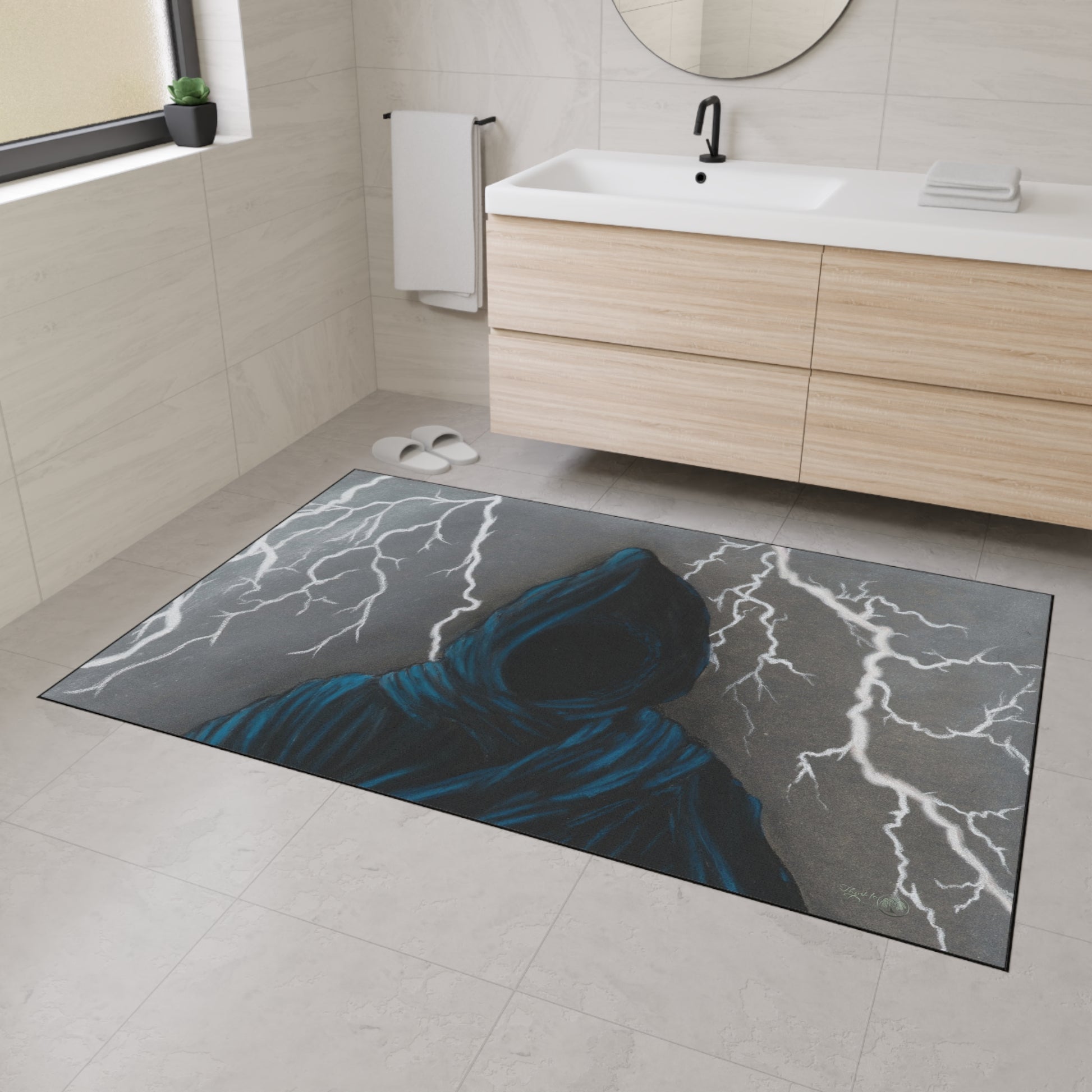 This heavy duty floor mat will add to that desired creepy space, and it's rubber non-slip backing for your peace of mind. For those who possess that inner spook, or want to rekindle it, 'The Grave Escape' will keep you safe.